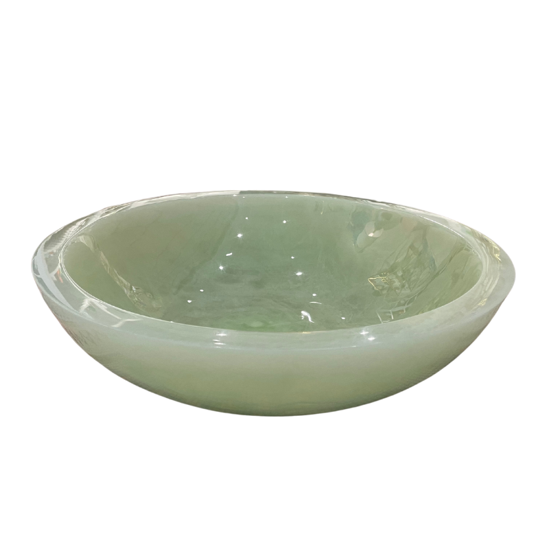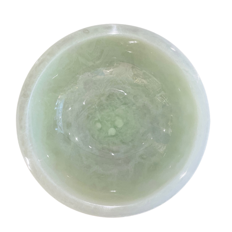 Add visual depth to any space with the cloud-like individual patterns of this oversized, handmade resin bowl. Featuring a slight pedestal and simple round shape, this bowl makes a stunning centerpiece with added decor or as an elegant fruit bowl.